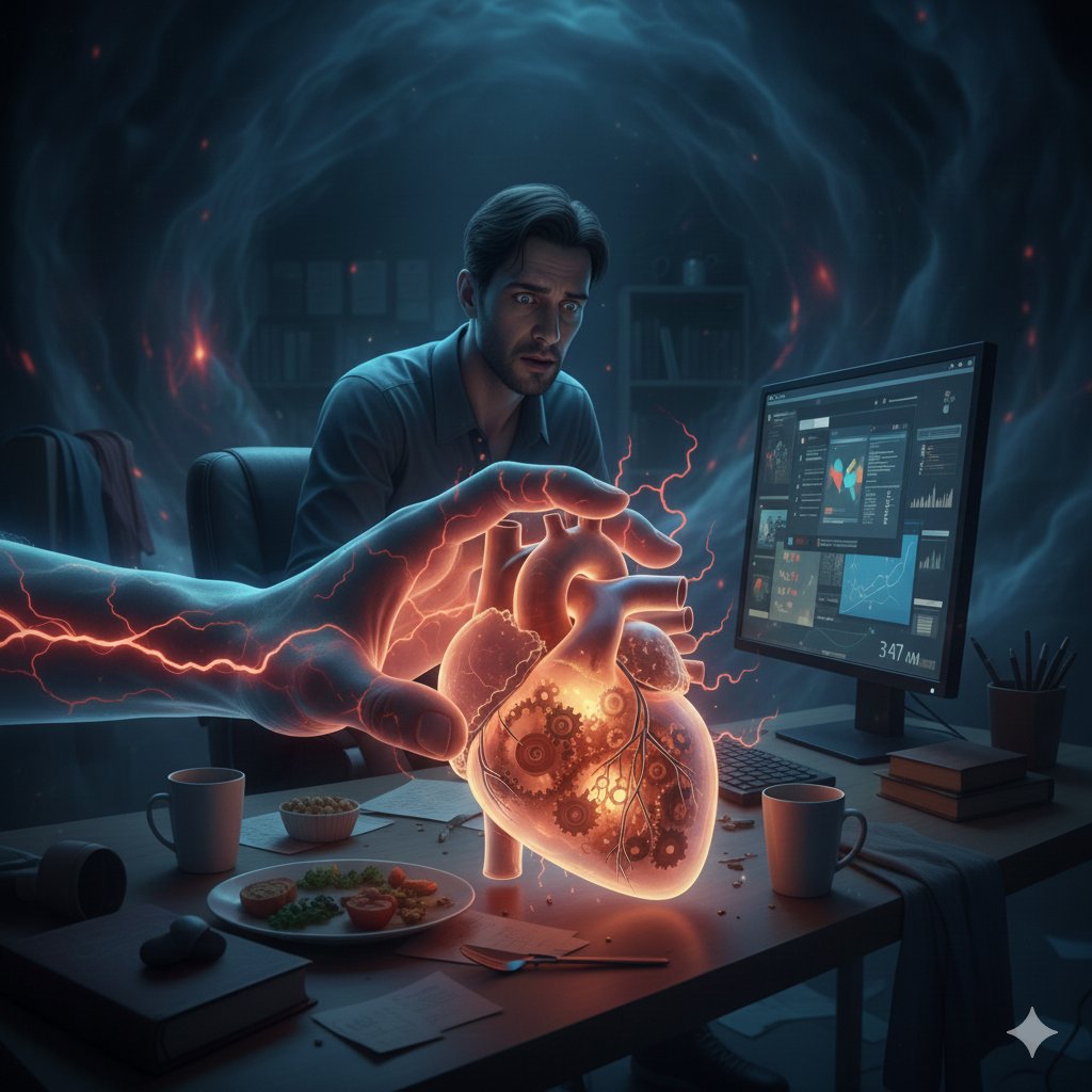Quando vivemos sob pressão constante, o corpo age como se estivesse diante de uma ameaça contínua. Os hormônios liberados nesse processo, especialmente o cortisol e a adrenalina, aparecem em excesso e com frequência maior do que o necessário. Isso acelera os batimentos cardíacos, estimula inflamações nos vasos sanguíneos e altera o metabolismo de forma prejudicial. Com o tempo, esse funcionamento desregulado fragiliza o coração e todo o sistema que o sustenta.